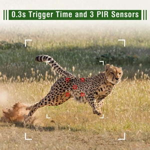 3 passive infrared sensors design can save more battery power while working,and increases sensitivity which makes it triggered in shorter time of 0.3S with longer distance up to 20m(65ft).