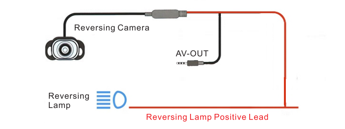 - The extra RED wire near the rear view camera is used to sense the reversing state, connect the RED wire to the positive terminal of the reversing light power supply.
