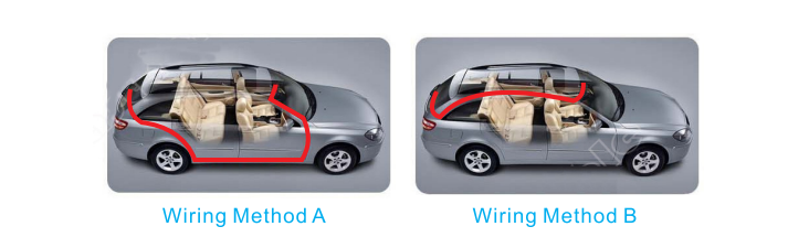 - Connect the power adapter to the rearview mirror and cigarette lighter, then route the power cord along the interior panel, you can follow the instructions below and hide the excess cord in the seam to keep it looking nice.