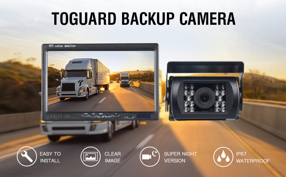 TOGUARD Rückfahrkamera-Kit, 7-Zoll-LCD-Rückfahrmonitor mit wasserdichter IP67-Nachtsicht-Rückfahrkamera für LKW, Wohnmobil, Anhänger, Bus, Ernte, Pickup, Wohnmobil, Van Große Fahrzeuge