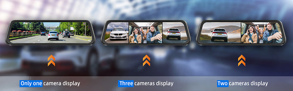 1080P 10'' full touch screen can support 3-channel front and rear view mirror car recorder with detached 360° in-car camera. Capable of recording windshield, interior and rear at the same time in HD or higher resolution, or it can record both views in HD at the same time. Two of the views are captured by sensors built into the main front unit, while the third view is recorded by a remote rear camera with a long cable that reaches the rear window of most vehicles. One screen can watch video from all 3 cameras at the same time or you can choose to watch one video channel with an easy finger swipe to adjust the video channel; it also has motion detection, not just collision detection, so it can wake up and record activity around the car while parked. It truly achieves 360° surveillance inside and outside the car, fully ensuring safety inside and outside the car, making it very suitable for cabs. In addition, it supports G-sensor, loop recording, parking guard, auto power off, scerrnsaver, and IR night cersion. This is an affordable and multi-functional car recorder.