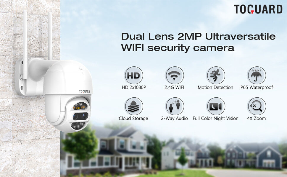 - 【Double objectif 2MP et zoom optique 4X】Avec une vidéo Ultra HD 2*2MP (deux fois plus clair 1080P) et une fonction de zoom optique 4X, la caméra extérieure Topiacam PTZ peut capturer clairement chaque détail. Cette caméra de sécurité wifi couvre une plage de rotation horizontale de 350° et verticale de 100°, elle vous permet de contrôler à distance la rotation de la caméra de sécurité pour surveiller chaque angle interne et externe par votre smartphone.