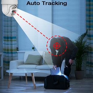 La caméra AP30 a une fonction de suivi automatique, lorsque quelqu'un marche, la caméra suivra et enregistrera chaque mouvement de l'intrus. Le modèle intelligent peut être défini. Lorsqu'il est détecté, le projecteur s'allume et émet un son d'alarme pour effrayer les intrus. En même temps, les informations d'alarme sont immédiatement envoyées au téléphone portable.
