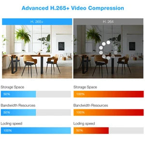 Économisez plus d'espace de stockage avec l'encodage H.265+ qu'avec H.264. L'espace de stockage peut être étendu jusqu'à 6 To. Le stockage en nuage, la confidentialité et la sécurité sont garantis.