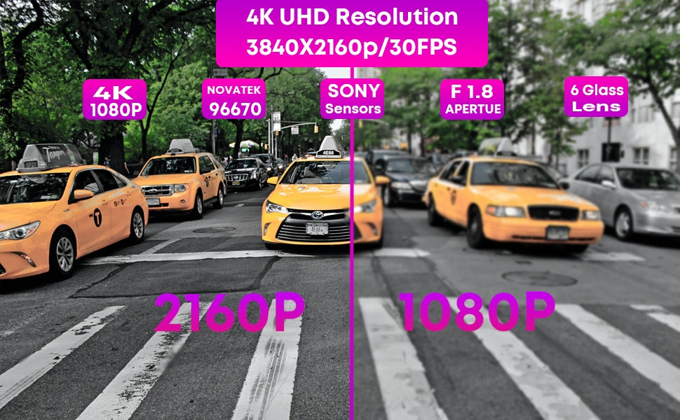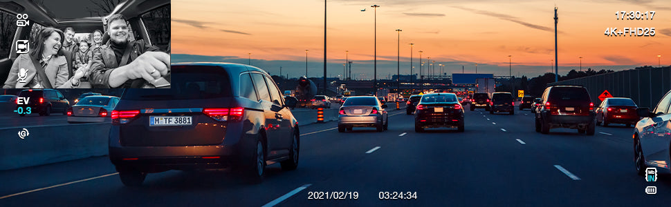 - 【Enregistrement 4K Ultra HD Dual Dash Cam】Adoptant un capteur d'image Sony de qualité supérieure, cette double caméra de voiture capture une vue cristalline en Ultra HD 4K 3840 * 2160 @25fps et 1920 * 1080P @25fps. La clarté des vidéos 4K permet à l'enregistreur de conduite d'obtenir de nombreux détails sur les plaques d'immatriculation et les panneaux de signalisation, parfaits pour vous protéger des problèmes de responsabilité potentiels ainsi que des accidents.