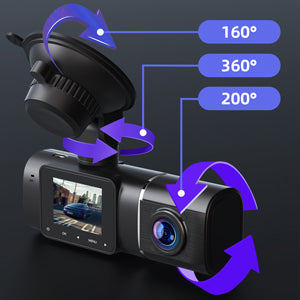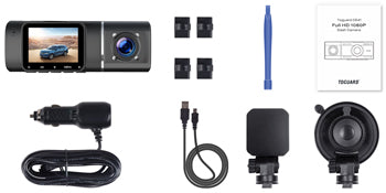 Cette caméra de tableau de bord à 2 canaux Toguard CE41A enregistre simultanément à l'avant et à l'intérieur à 1920x1080P @ 30fps, avec caméra infrarouge à vision nocturne, enregistrement en boucle continue, mode de stationnement, également, support adhésif ou support à ventouse amovible pour un réglage plus facile. Écran vidéo LCD 1,5" Caméra frontale 1920x1080P@30fps Caméra intérieure 1920x1080P@30fps avec capteur G de vision nocturne infrarouge pour un verrouillage automatique précis et des déclencheurs d'enregistrement Batterie 240Am intégrée pour enregistrer quelques minutes après une charge complète lorsque la caméra est débranchée Prise en charge U3 ou au-dessus de la carte Micro SD de 256 Go. [Remarque : Veuillez formater la carte SD lors de la première utilisation]