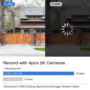 - 【Écran Super HD 5MP】 - Adopté la technologie de compression vidéo H.265+, qui pourrait doubler le taux de compression des données, garder la vidéo plus fluide même avec un faible débit binaire, il vous permet de maximiser l'espace de stockage et de profiter enregistrement ultra-long avec une meilleure qualité d'image.