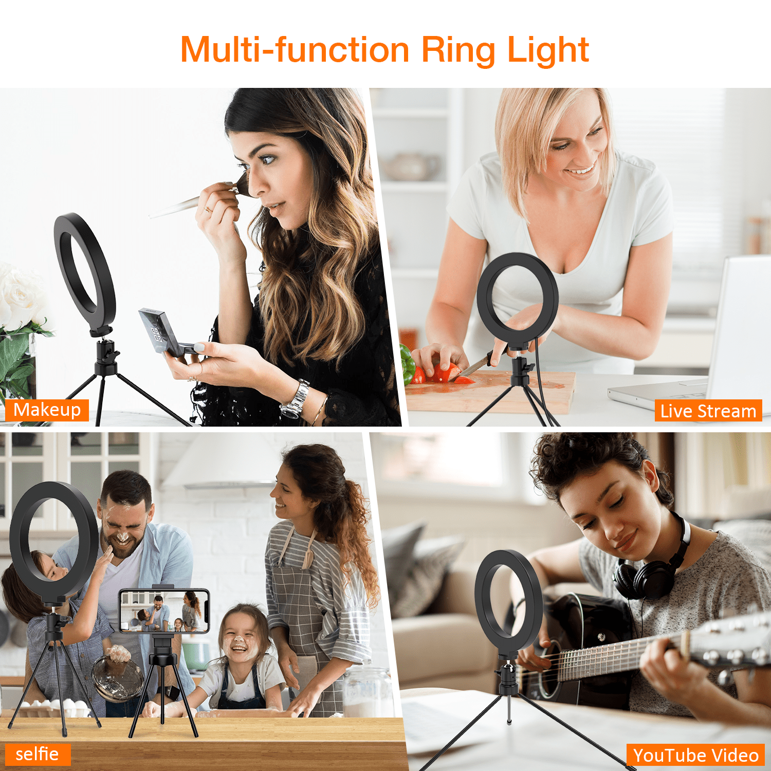 Two-in-one design combines the phone holder and selfie ring light together. Adjustable tripod multifunctional ball head allows you to find the perfect angle to illuminate your subject, take photos or broadcast live with ease. Suitable for various shooting environments: for YouTube video shooting, TikTok live streaming, makeup, yoga or fitness online teaching, video conferencing, etc.