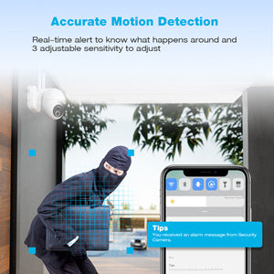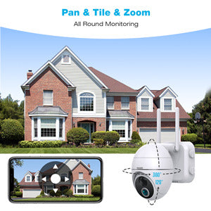 Les caméras de sécurité PTZ extérieures offrent une plage de rotation verticale de 120 ° et une plage de rotation horizontale de 355 °, réduisant considérablement l'angle mort dans le champ de vision et protégeant votre famille de manière plus complète. Et vous pouvez contrôler le cardan de la caméra de sécurité via l'application mobile librement changez l'angle de l'objectif en fonction de vos besoins.