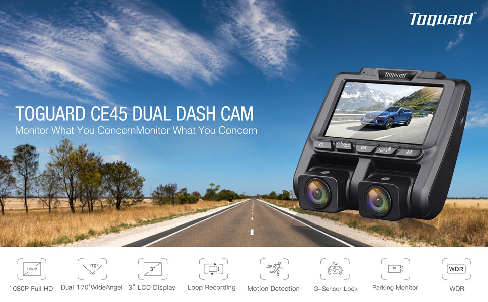 【24 Hours Parking Monitor and Motion Detection】: Triggered by parking monitor and motion detection, double dash cameras will automatically turn on and start recording when it detects motion in front of your car or if someone blocks your parked car. Great audio recording with built-in microphone can provide perfect proof if someone damages your car and gives you peace of mind an