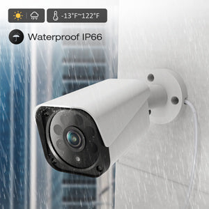 【IP66 Waterproof and Night Vision】The camera is a durable metal camera that can work in harsh environmental conditions. Whether sunny or rainy, the waterproof camera can be placed both indoors and outdoors. So no matter what the weather is, the camera will work 24/7. Get a sharp and crisp image day or night with the camera's automatic IR-CUT filter, Up to 80ft night vision in total darkness and 130ft Night vision in ambient light.